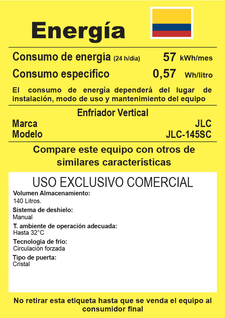 Vitrina JLC Refrigerante Vertical 145L JLC-145SCVitrina JLC Refrigerante Vertical 145L JLC-145SC