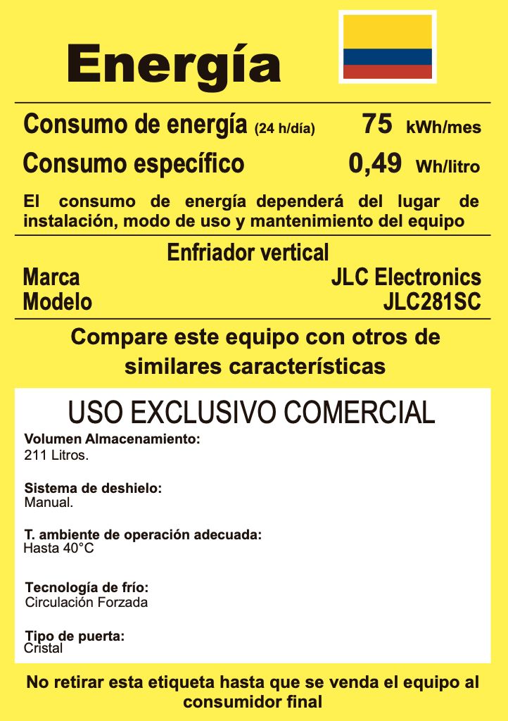 La Vitrina Refrigerada Vertical JLC de 211 litros, modelo JLC-281, es perfecta para negocios que necesitan