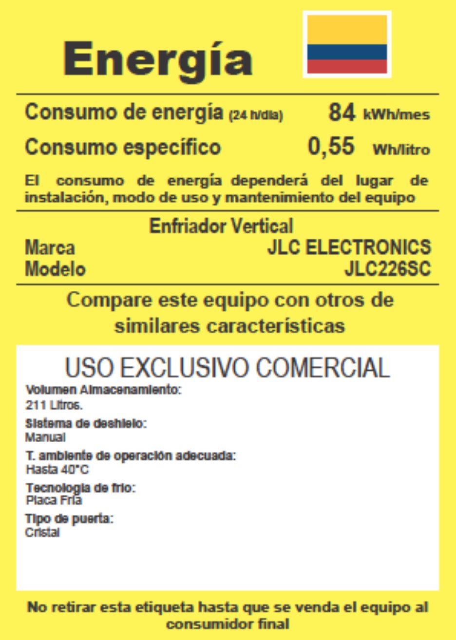 Vitrina Refrigerante JLC Vertical 211L JLC-226SC | Iluminación LED Interna y Externa